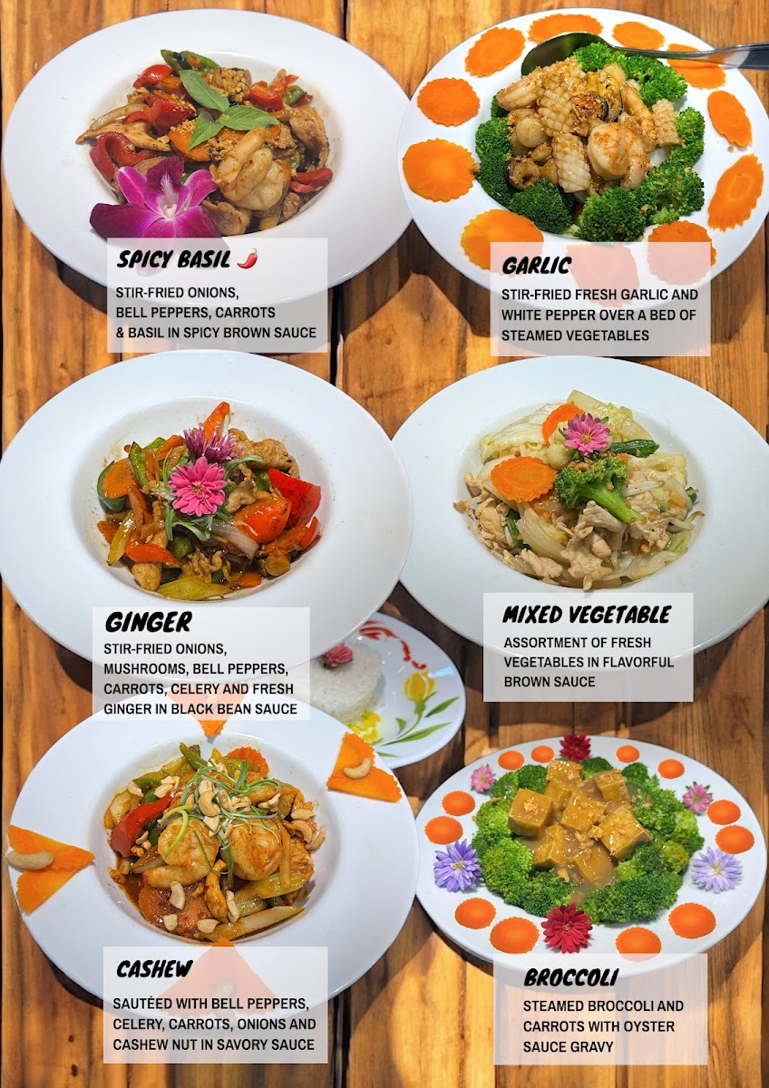 Sauteed with bell peppers, celery, carrots, onions, and cashews nut in savory spicy sauce. ????️